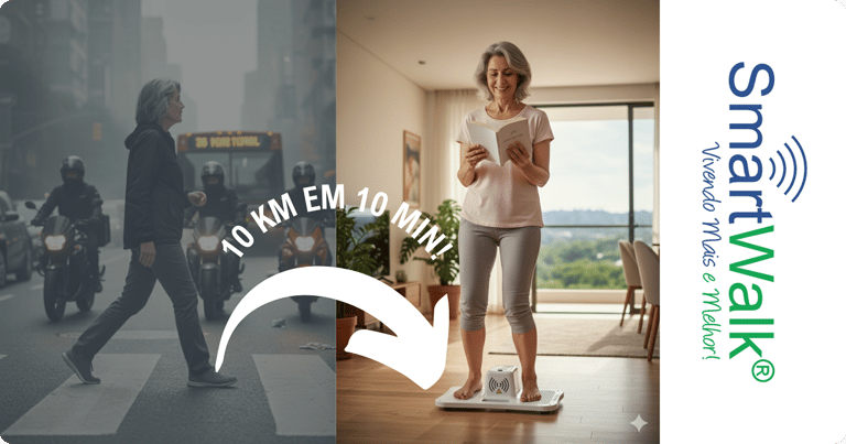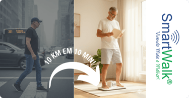 A SmartWalk® reproduz os estímulos mecânicos da caminhada de maneira acelerada, são mais de 1.600 ondas por minuto, as quais são transformadas em sinais biológicos no organismo, assim como na caminhada, podendo combater os efeitos do sedentarismo e do envelhecimento, sem sair de casa e sem esforço.